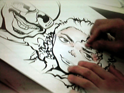 マイケル&スティービーの似顔絵を描いていくさまをノーカット風味で早送り再生、というもの。