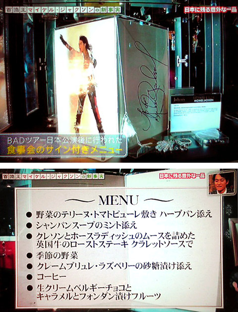 “BADツアー日本公演後に行われた食事会のサイン付きメニュー” なるブツが。