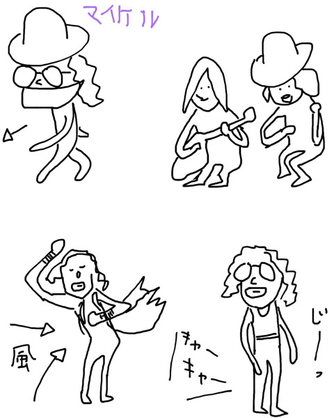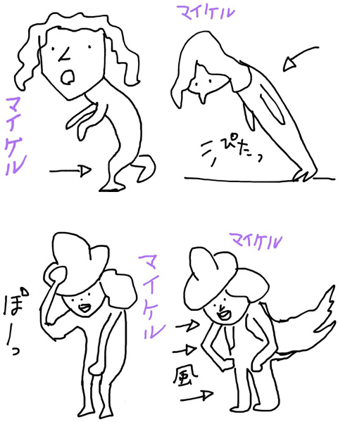 4.マイケルジャクソンさんを描いてみました。Black or WhiteのPVで風に耐えている名場面です。 L・O・V・E