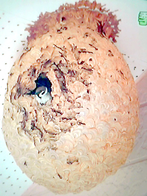 “スズメバチの巣に居ついたスズメ”