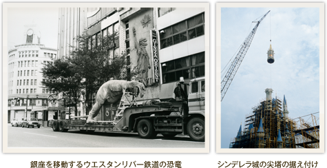 ちょっち笑えたのが、晴海通りを南下する恐竜の図。
