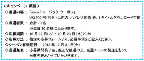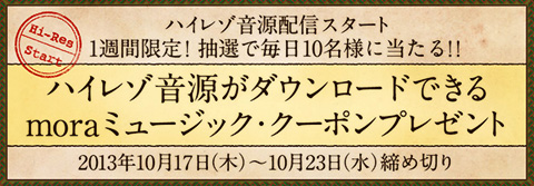 毎日10人×1週間、mora用ミュージック・クーポンをプレゼント。