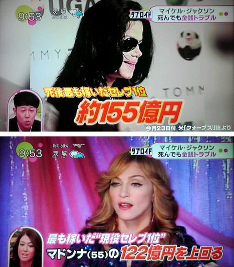 「現役セレブ第1位のマドンナを大幅に上回るキング、マイケル・ジャクソン」