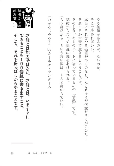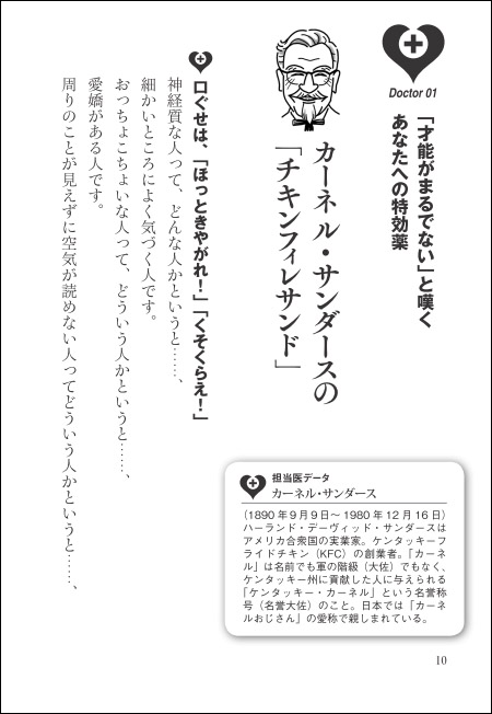 ▼著者が『名言クリニック院長』に扮し、古今東西の偉人の生き様を処方(紹介)していく ex;