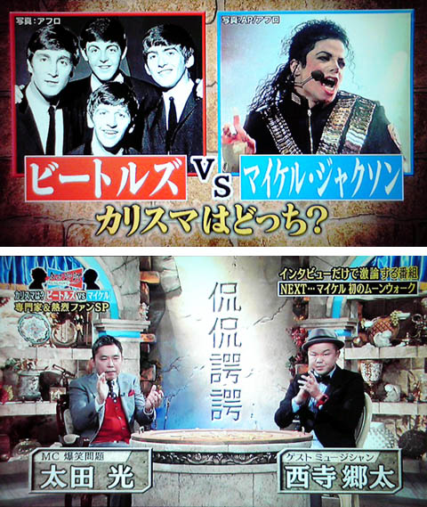 11/7(木) 深夜1:51~2:21 OA @テレビ朝日【侃侃諤諤】 ▼本日のテーマ 伝説のバンド「ビートルズ」と KING OF POP「マイケル・ジャクソン」 本物のカリスマはどっち?<第1ROUND>マイケル派のT.I氏は、独特のダンスの振付が魅力だと語る。