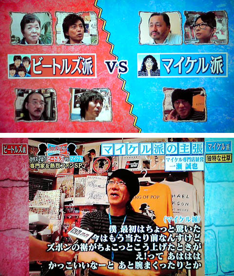 <決勝ROUND>ビートルズ派のK.I氏の 「ジョンとポールのライバル心が世界を変えた」 という話をマイケル派A.Mさんへぶつけると、「部屋に汗の水たまりが出来た」 というマイケルのストイックさと、「マイケルが元祖ルーズソックスだ」 と主張。