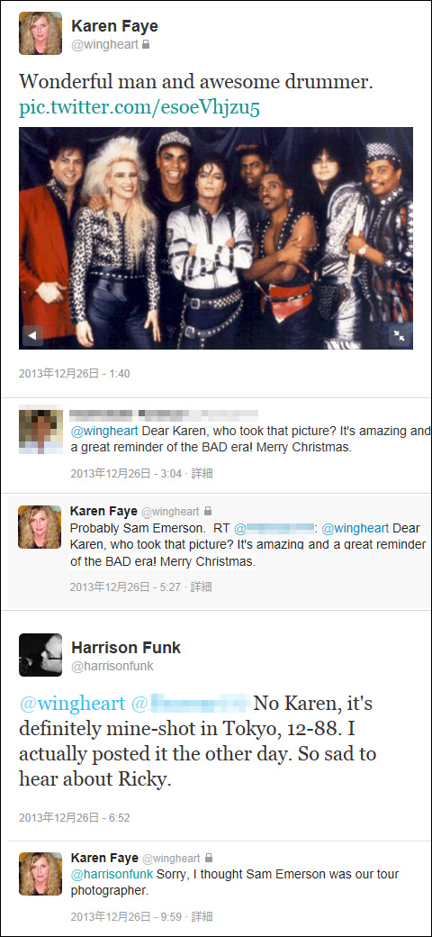 リッキー追悼で貼ったBADツアー時の集合写真へ、1人のファンから