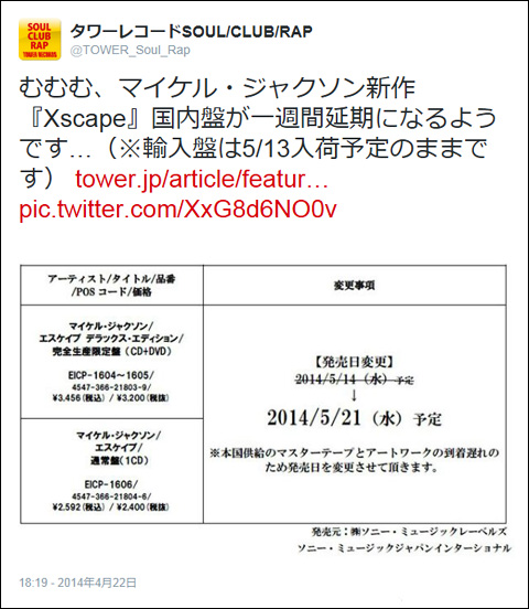 2014/5/21(水)予定※本国供給のマスターテープとアートワークの到着遅れのため