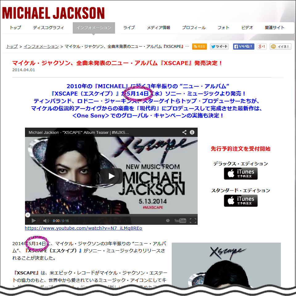 マイケル公式サイトのTOPページ