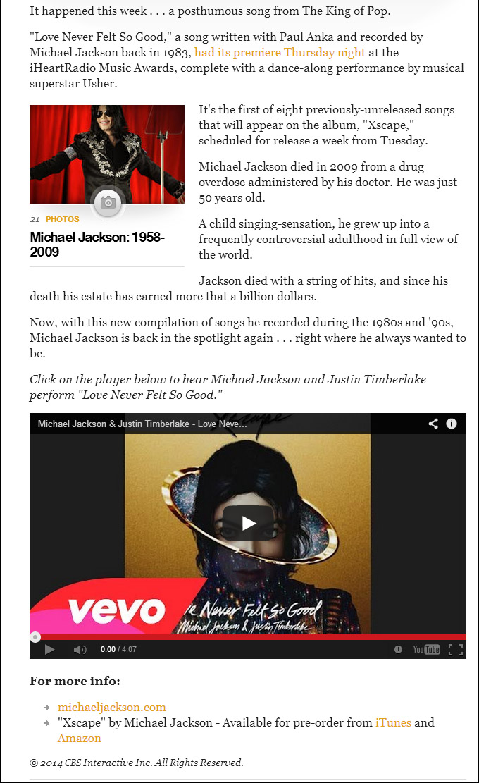 マイケルのヒストリー的なショットを流しながらのナレーション。