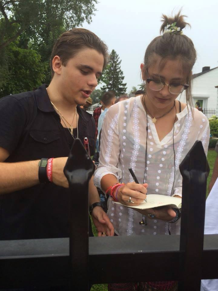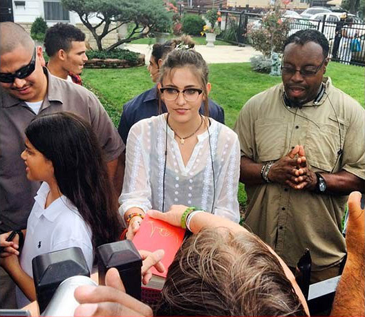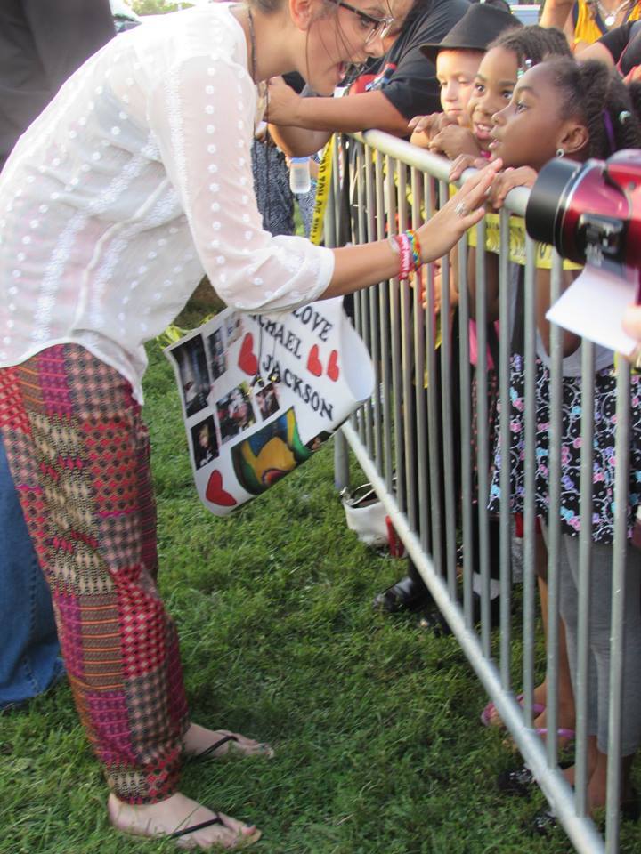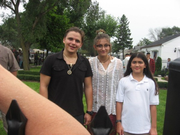 インディアナ州ゲイリーにあるマイケルの生家を訪れた子供たち3人。