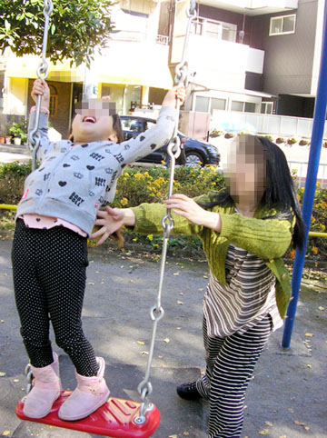 もう片方の手でくさりをわしづかみして止めたら 大姪への衝撃がすごくて落下しちゃう