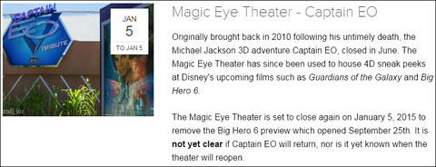 「キャプテンEOは、後日戻ることになっています」 つってたくせに