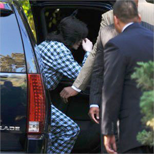 Michael Jackson, seen here wearing adult-sized flannel PJ's, arrived at the home of long time gal-pal Liz Taylor for a good 'ole fashioned, age appropriate Pajama Party.