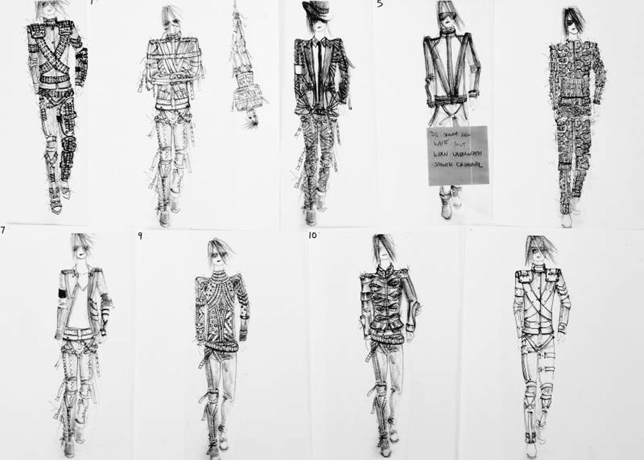 A Michael Jackson owned pencil on paper sketch of a pleated face mask designed for Jackson's unrealized THIS IS IT Concert Tour. |