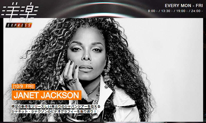 【ジャネット・ジャクソン VideoSelects】10/9(金)朝8:00~30, 11:30~00, 19:00~30, 深0:00~30 @MTV(CS)