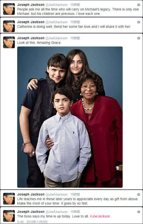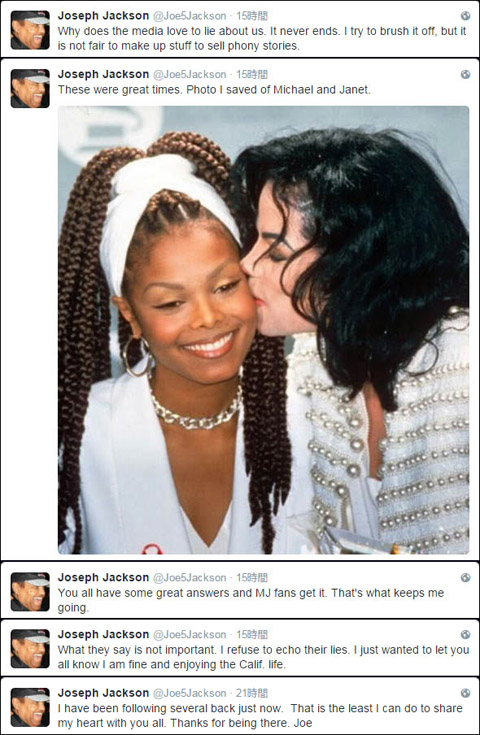 | 今日は、マイケルのことを考えようか。 それから、ジャクソン家にとってファン達がどれほど大きな存在であるかを。 Twitterを使うちょっとした時間が取れたのでね。 |