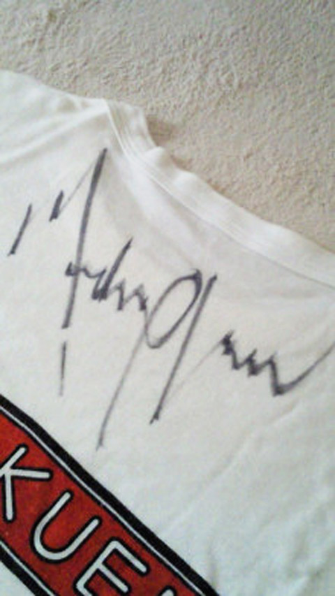 マイケル・ジャクソン。 6月25日、今日でもう一年かぁ…。 早いなぁ。 下のTシャツは、 ずいぶん前にジム会員の岡さんがもらったサイン。