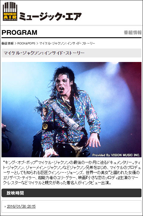 マイケル関連番組でその恩恵に授かれるのは、現時点では2本あり。