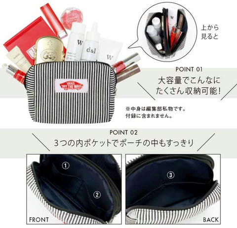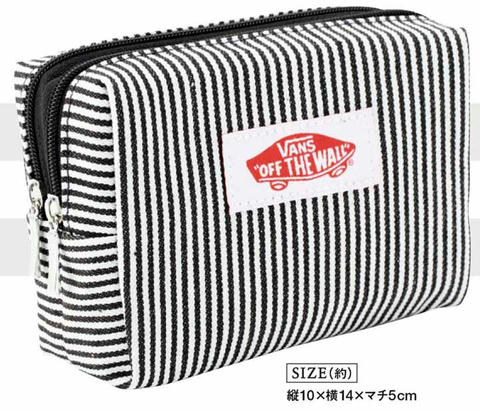 【mini】 2016年4月号 予価640円(税込) 付録: VANS特製 "OFF THE WALL" ヒッコリーWジップポーチ ▼幅14cm×高さ10cm×厚5cm / 内ポケット3つ