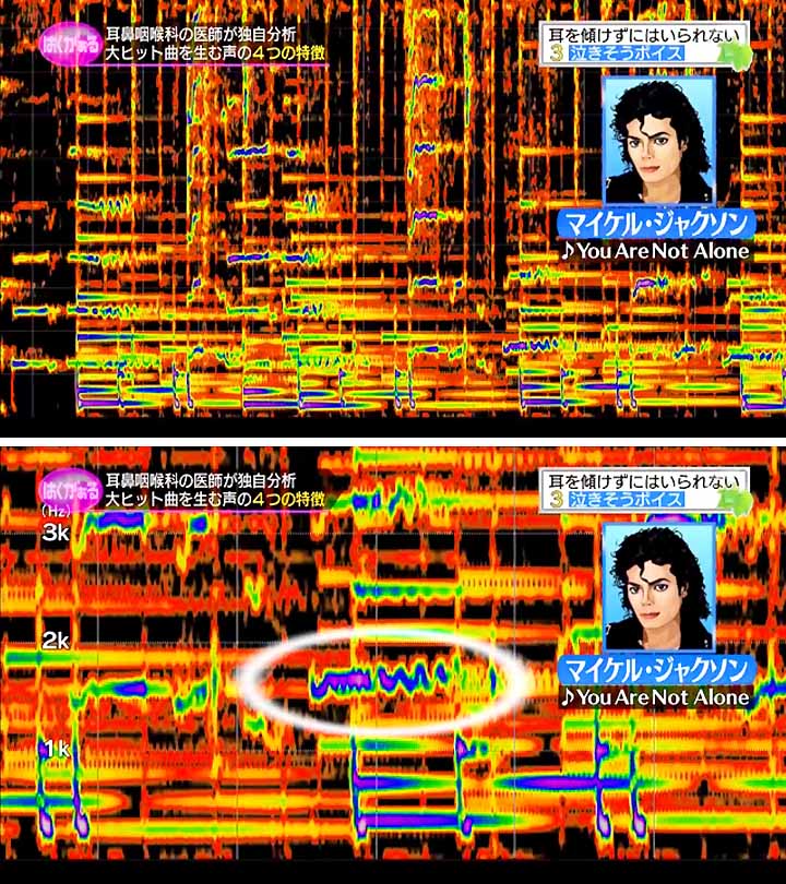 「こういう歌い方がやっぱりこう、するかしないかも、アーティストの特徴であり 考え方でもあると思うんですよね。」≪マイケル・ジャクソンの声紋≫"You Are Not Alone" より