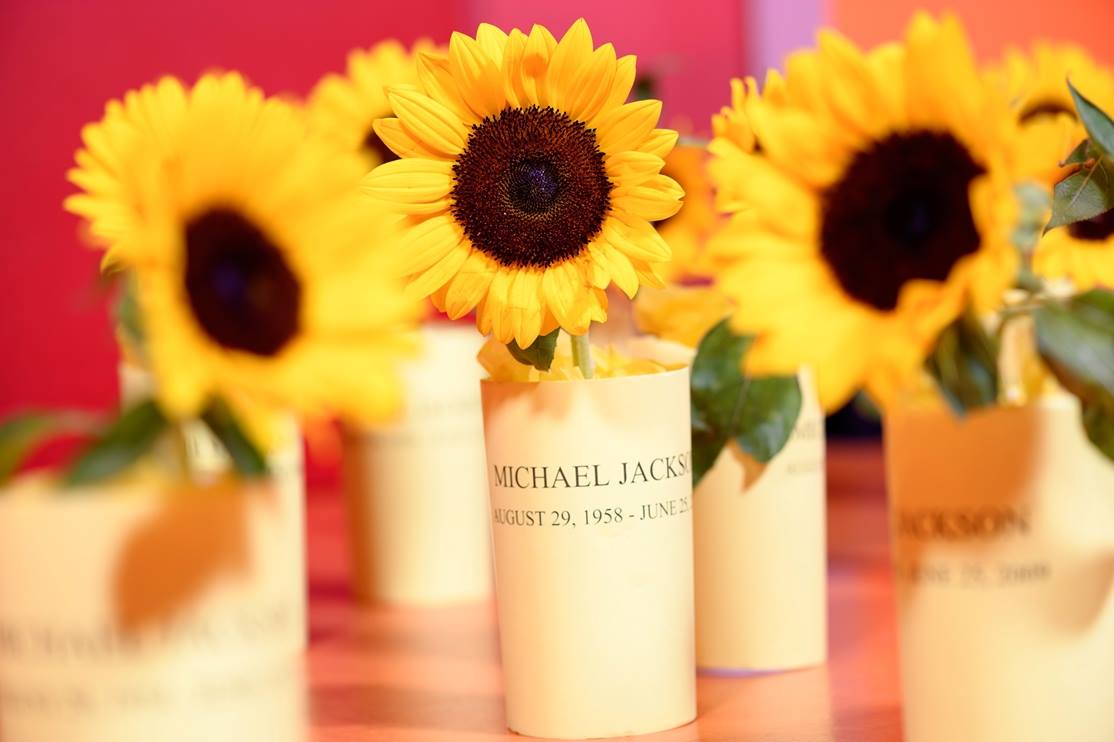 ▼マイケル展示エリアにてひまわりのフラワーポッドを配布,メッセージを書きフィギュア周辺に供える