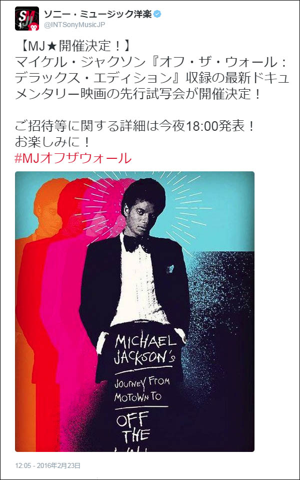 http://www.sonymusic.co.jp/artist/MichaelJackson/event/100567応募締切: 2016年2月26日(金) 正午